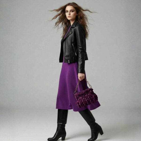 Amethysta is a small handmade bag created by Rita from plush, chunky yarn that feels almost cushion-soft in your hand. The bold chain strap adds a gentle roughness to all that softness – a balance of comfort and strength.