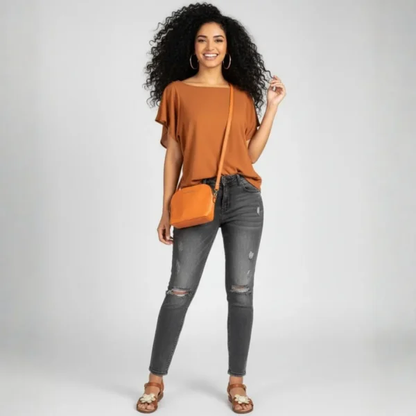 Cinnamon is a top by Zuiki with a soft, relaxed drape and an easy neckline. Lightweight and fluid, it works beautifully half-tucked into denim, paired with linen trousers, or layered under a jacket when you want a little more structure.