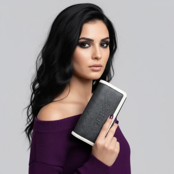 Domino Guess Wallet is a black wallet with a crisp white trim. It feels quietly polished – simple enough for daily use, with just enough detail to stand out.