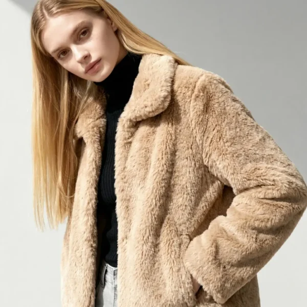 A fluffy teddy jacket by Tu Woman in a honey-beige tone, crafted from plush faux fur with a smooth lining for easy layering. Cosy without being heavy, it’s an effortless throw-on for school runs, winter walks, and evenings out.
