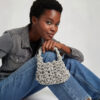 Luna bag is handmade by Rita from glittering silver cord, woven into a chunky, sculptural shape that feels like carrying a piece of night sky. The texture is bold, yet the colour keeps it calm – shining gently rather than loudly.