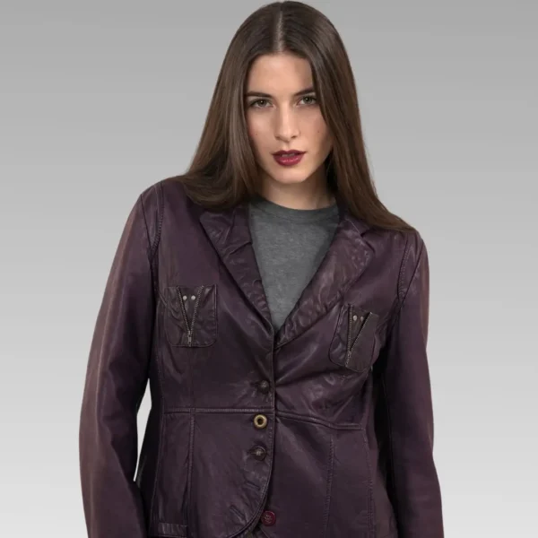 A genuine leather jacket by S´EGNARO in a rich mulberry-violet tone, with a softly tailored shape and paneled seams that give it structure. Finished with zip details at the chest pockets and a classic button front, it’s an easy way to add depth to simple outfits.