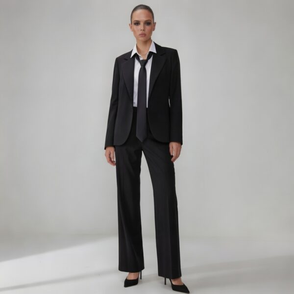 Ravenna is a black blazer that slips easily into almost any wardrobe. The clean, tailored cut frames the shoulders softly and skims the waist, giving structure without feeling stiff or formal.