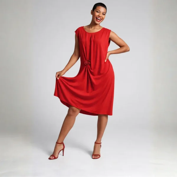 An unforgettable stylish statement in true red. Draped, comfortable and finished with one thoughtful detail.