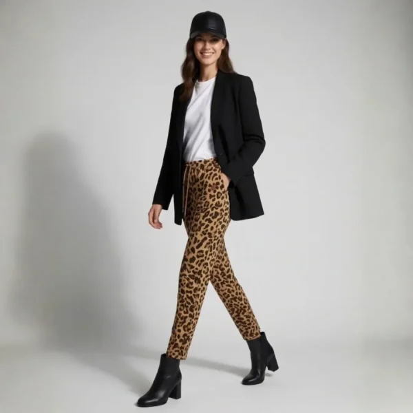 Leopard-print leggings by ZARA, made in a modal-blend fabric that feels smooth and comfortable on the skin. The print brings character, while the slim shape keeps them easy to style- pair with a white tee and blazer, an oversized knit, or a long coat and boots for cooler days.